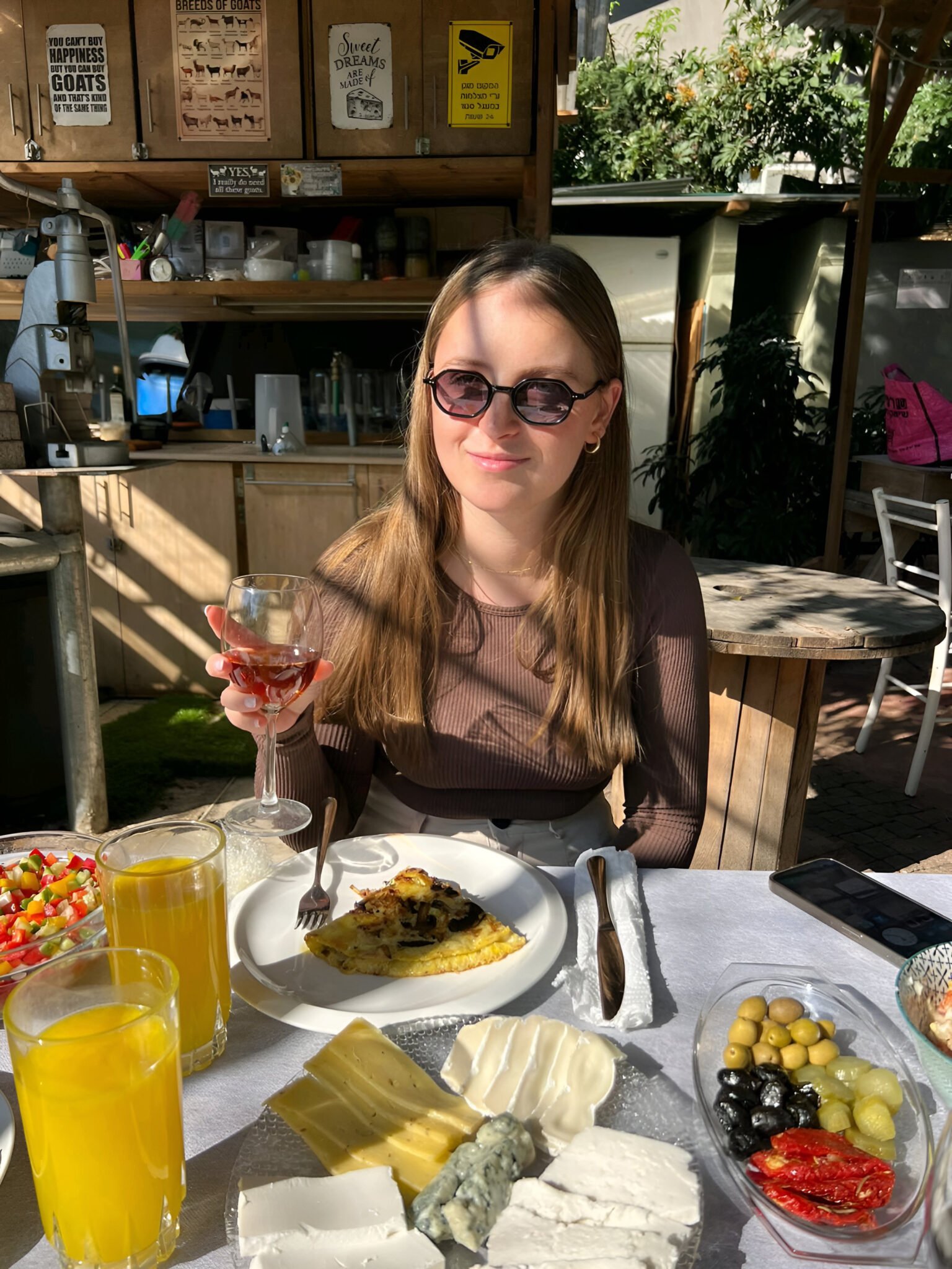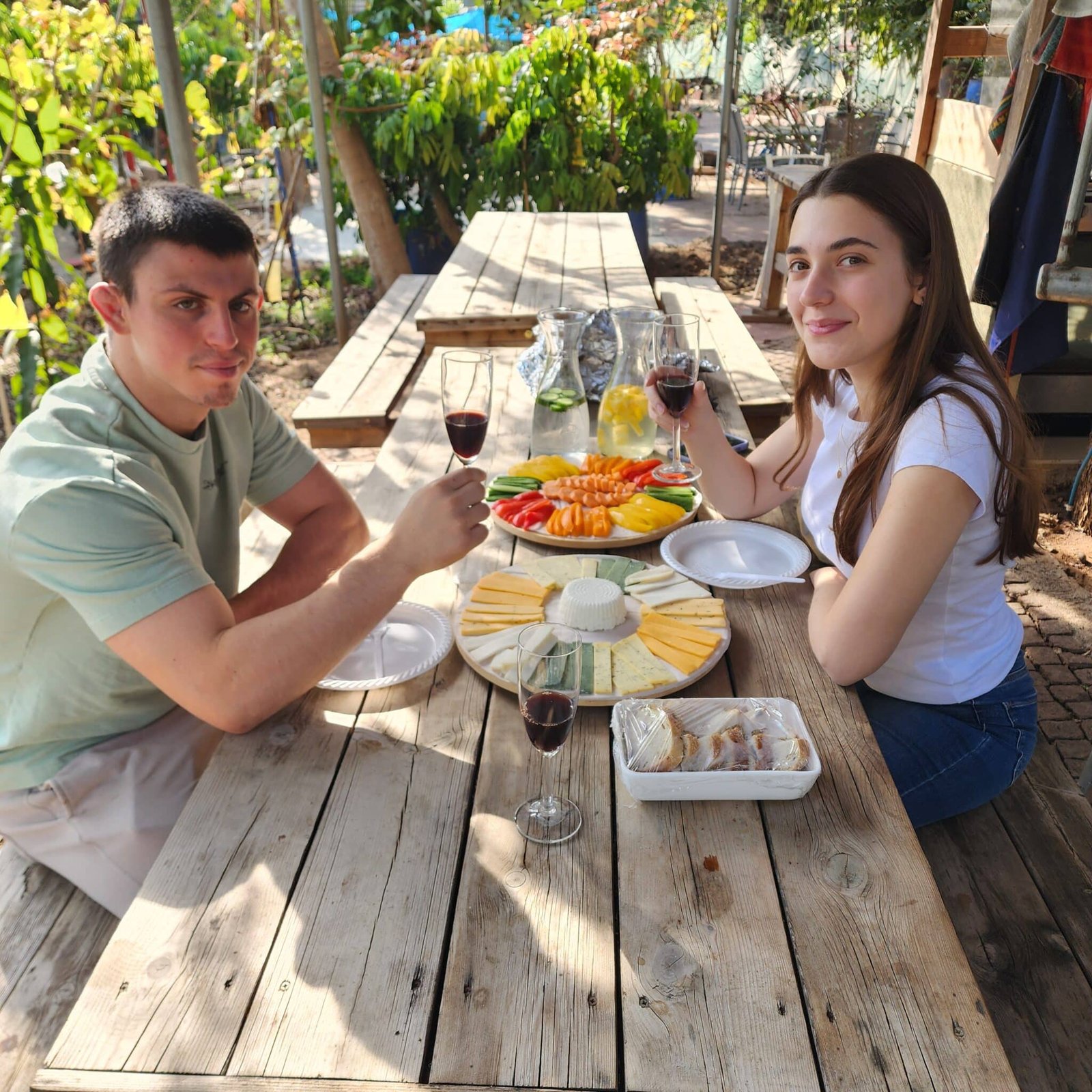 נשב יחד לארוחה עשירה הכוללת פלטת גבינות משק, ירקות רעננים, לחם מחמצת פריך, יין טוב ושתייה חמה/קרה.