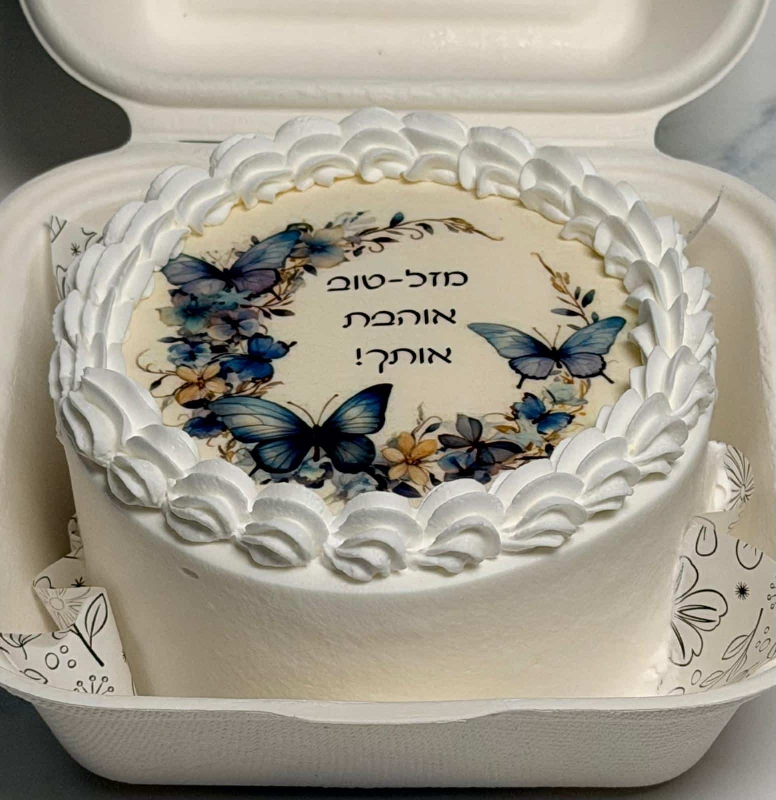 עוגה בעבודת יד של קונדיטורית הבית (סיגל), עם הקדשה אישית על פי בחירתכם — מתנה מתוקה ומיוחדת שמבטאת את האהבה.